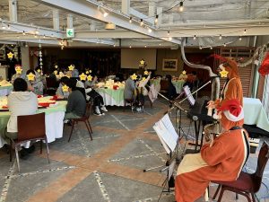 クリスマスソングを楽しむ子どももいれば、食後の演奏で眠たそうな顔をしている子どももいました😴