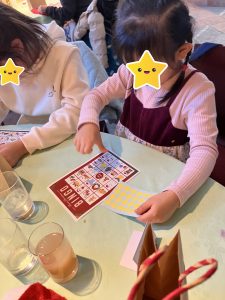 始まってすぐにリーチになる子どもや、なかなか自分のカードが埋まらず「はあ…」としょんぼりしている子ども😞