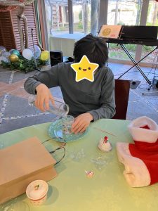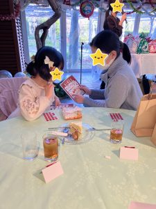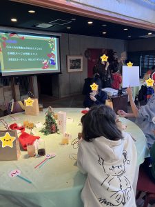 可愛いスノードームを作り終えた後は、さくらこれっとで準備したレクリエーションを楽しみました。スリーヒントクイズやハイ&ロークイズでは、同じテーブルのお友達同士で「俺わかった~」「いや絶対これやろ!」と話し合いながら答えを考えている子どもたち!