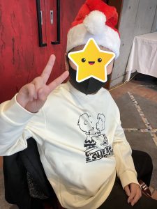 まずは帽子を被りサンタさんに変身し、みんなで仲良く乾杯しました!