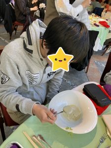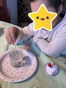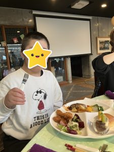 りぃたくんが帰ってしまい、少し寂しそうな子どもたちでしたが、コース料理が届き始めると目をキラキラさせていました✨