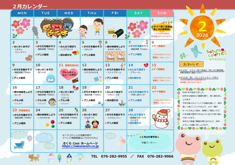 さくらこれっとの令和8年2月カレンダーを公開いたしました!
