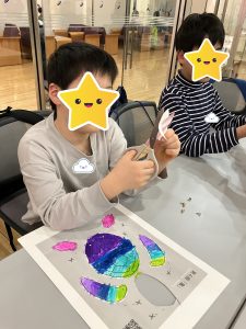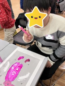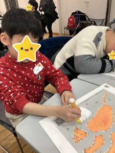 普段制作をしない子も、はみ出ないように丁寧に塗ったり、線に沿って形を切り取ったりと集中している姿を見ることができました!