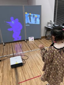 制作後はプロジェクターを利用したデジタルアートに触れ、体験しました。