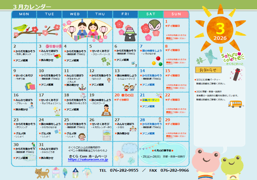 さくらこれっとの令和8年3月カレンダーを公開いたしました!